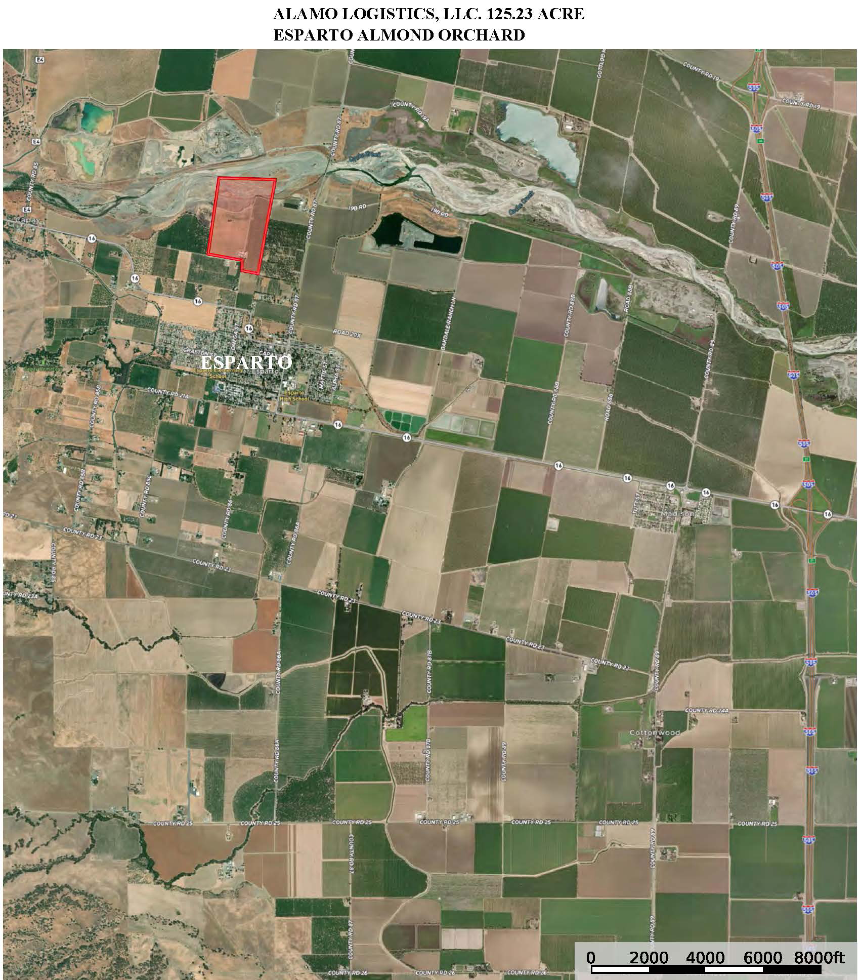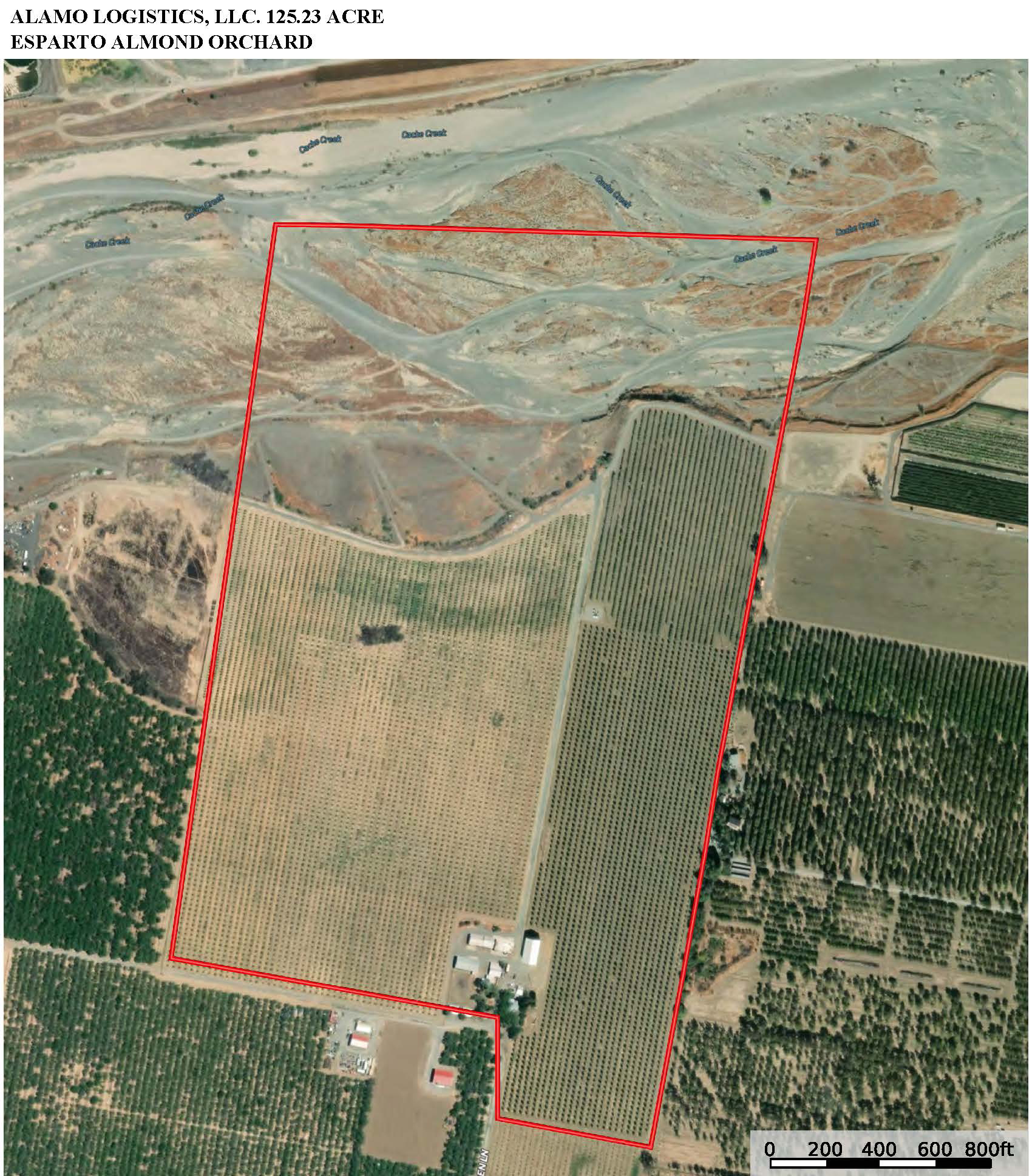 The property is located north of Highway 16 at 17275 Jensen Lane, on the no1th side of the town of Esparto in western Yolo County. The high quality Almond orchard was planted by Capay Valley Ranch in 2019. In addition to the orchard income, there is good cash flow from the rental of the many improvements. The main house is a two story craftsman style house with 3 bedrooms and 2 bathrooms, consisting of 2, I 00 square feet, with a full basement. The home was extensively remodeled in 2024 and is ready for move-in. Also included on the property are modular home, two small homes, a main shop, and secondary shop.
